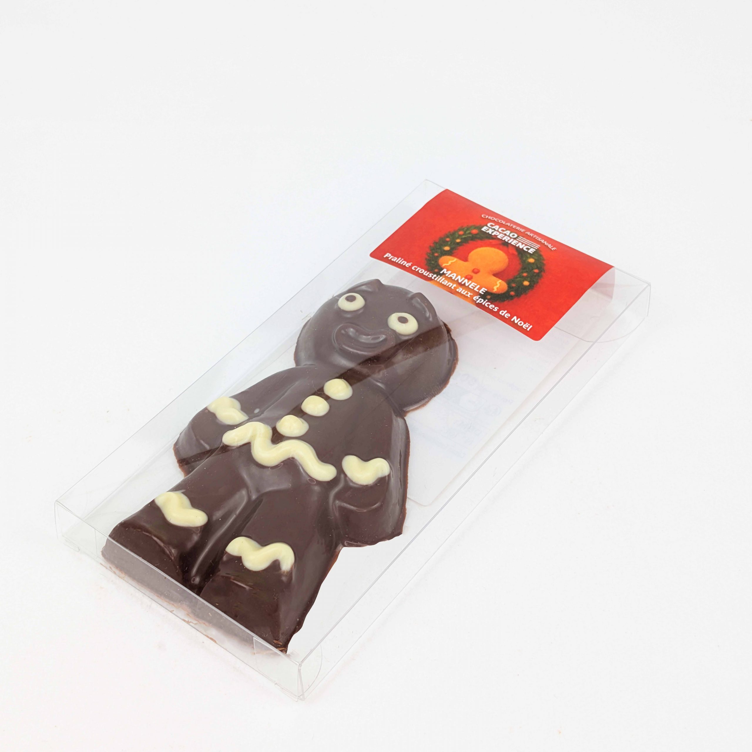 Notre Mannele au praliné noisette enrobé de chocolat au lait 50 % cacao est disponible pendant toute la période des fêtes, en boutique ou en ligne. Offrez-le en cadeau ou savourez-le en famille pour partager un moment gourmand et traditionnel.